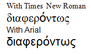 word processor documents correctly if your fonts support Unicode Greek.