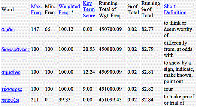 With the Perseus Greek vocabulary tool it is easy to get specific vocabulary lists from your favorite Greek texts. Sometimes this tool goes down. Just try later if the page doesn't come up. This tool is very nice if your main interest in learning Greek is reading Plato. By focusing on Plato specific vocabulary you maximize the effectiveness of your vocabulary study's impact on your reading of Plato.